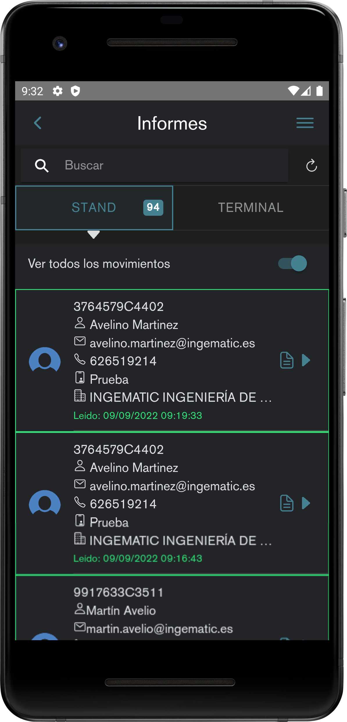 En nuestro WebPortal, al que puedes acceder con las mismas credenciales, tendrás la conveniencia de revisar detalladamente todas las lecturas realizadas durante el evento. Además, podrás exportar esta información a un archivo Excel, brindándote la facilidad de gestionar y analizar tus datos de manera eficiente y sin contratiempos.
